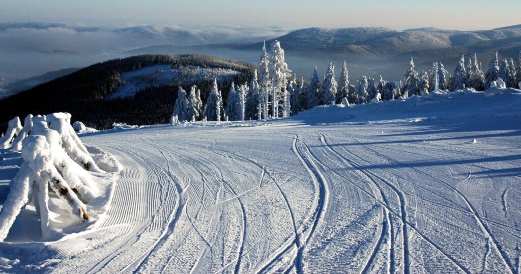 Na Masyw Śnieżnika można też przyjechać z biegówkami. Tutaj dobrze wtedy wybrać się do przełęczy Żmijowa Polana, poniżej Czarnej Góry, gdzie do schroniska ratrakowany szlak narciarstwa biegowego.
