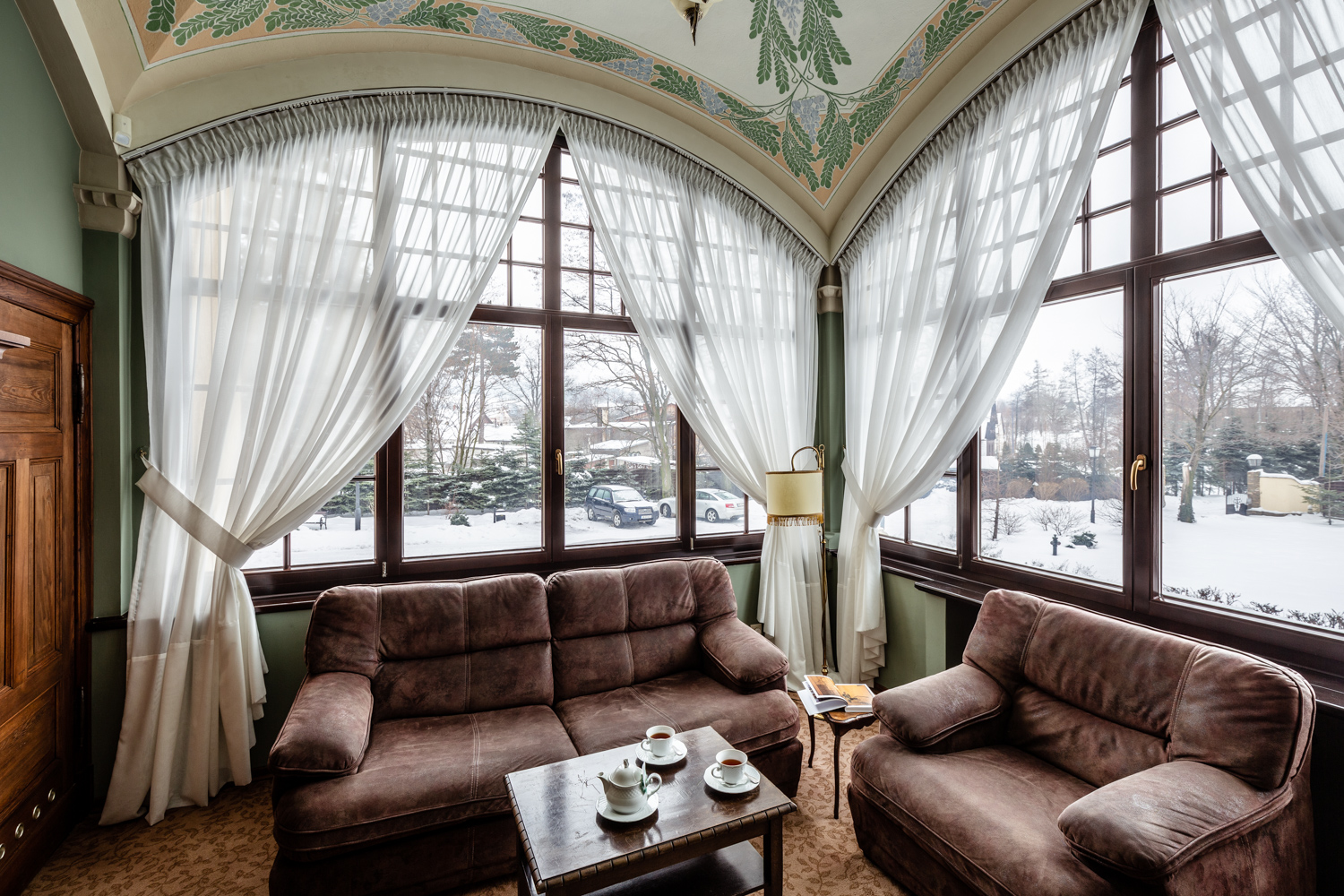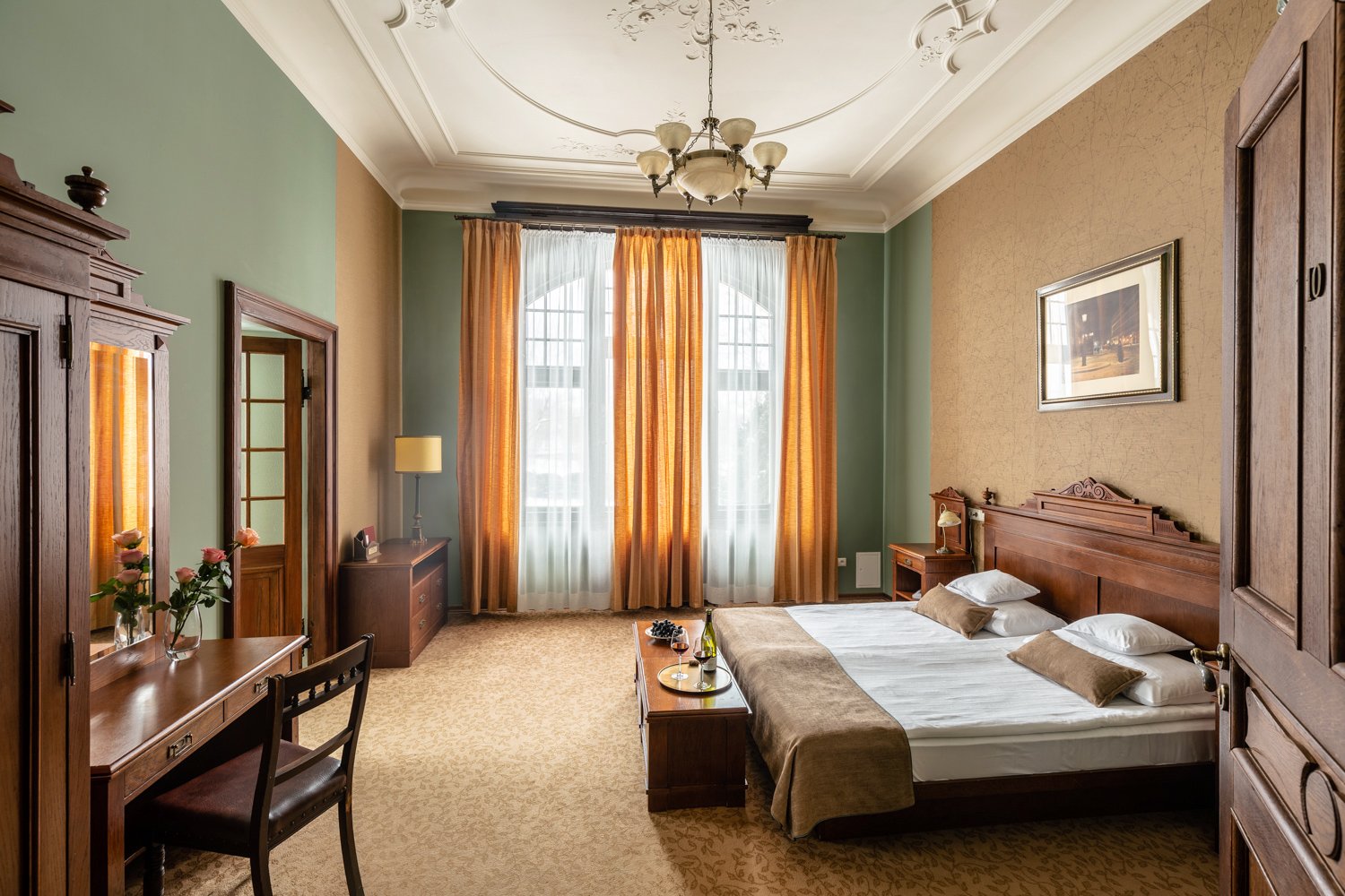 W zabytkowych wnętrzach Villa Elise czekają na Was apartamenty, gdzie każdy element opowiada własną historię. To przestrzenie, w których secesyjna dusza spotyka się z współczesnym komfortem, tworząc wyjątkową atmosferę górskiego azylu. Zabytkowe piece kaflowe, które kiedyś ogrzewały wieczory rodziny Losky’ch, dziś nadal emanują ciepłem. Poranne promienie słońca przenikają przez oryginalne witraże, malując kolorowe refleksy na ścianach, co dodaje wnętrzom wyjątkowego klimatu.
