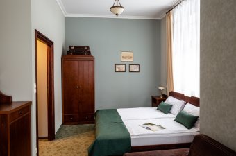 Wszystkie nasze pokoje urządziliśmy w podobnym klimacie, subtelnie nawiązującym do elegancji początku XX wieku. Stonowane kolory, drewniane meble i wygodne łóżka pozwalają odpocząć w komfortowych warunkach, ale też nacieszyć oko dobrze dopasowanym detalem. Dla ułatwienia pokoje podzieliliśmy na dwie kategorie: standard i premium. Różnią się przede wszystkim wielkością.