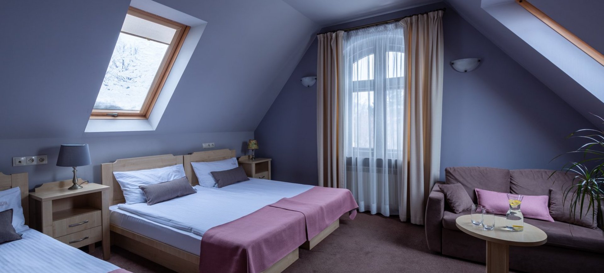 Wszystkie mają łazienki wyposażone w ręczniki, kosmetyki i suszarkę. W każdym pokoju jest dostęp do wifi. W cenie noclegu można skorzystać ze Strefy Relaksu oraz wypożyczyć rowery górskie. Pokoje premium dodatkowo są wyposażone w mini lodówki oraz zestawy do parzenia kawy i herbaty. Do wyboru mamy 10 pokoi, 2 apartamenty oraz 1 studio familijne.