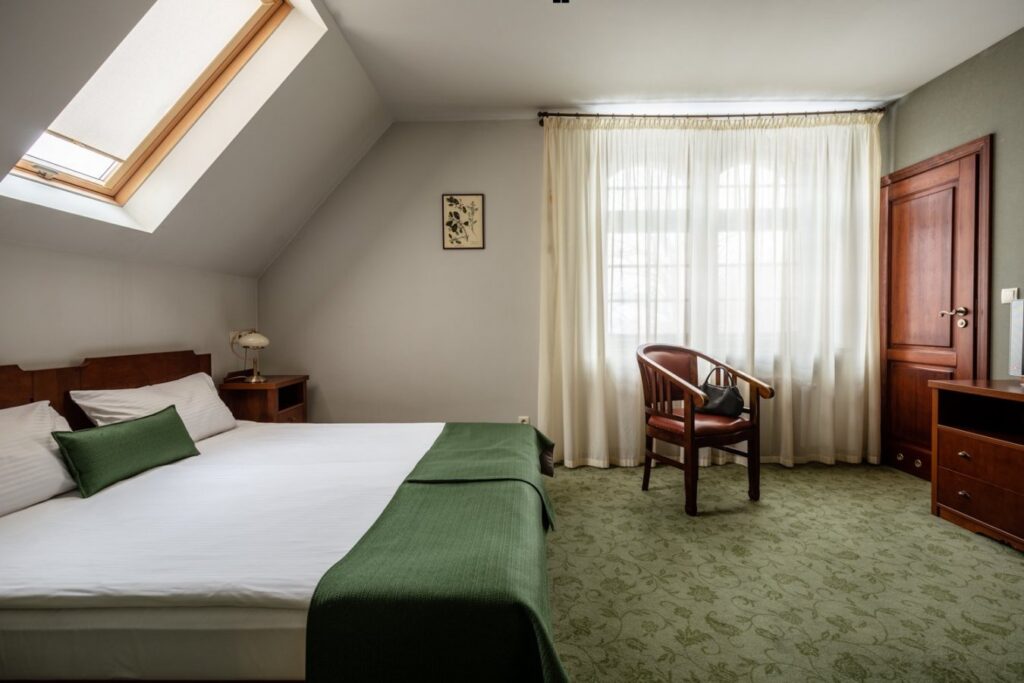 Komfortowo urządzone pokoje 2-osobowe, których goście mogą cieszyć się widokiem na ogród, bukowy las lub park. Każdy z pokoi ma swój indywidualny charakter. W każdym z pokoi znajduje się lodówka, zestaw do parzenia kawy i herbaty oraz woda mineralna. Niektóre pokoje posiadają również rozkładaną kanapę i oryginalnie zachowany balkon. Pokoje dysponują bezpłatnym dostępem do Wifi. Przytulne łazienki wyposażone są w ręczniki, wysokiej jakości kosmetyki oraz suszarkę. W cenie pokoju oferujemy Gościom bezpłatny dostęp do Strefy Relaksu oraz możliwość wypożyczenia rowerów górskich.