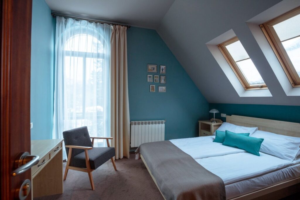 Przytulnie urządzone pokoje 2-osobowe z widokiem na ogród, park lub bukowy las. Każdy z pokoi ma swój indywidualny charakter. W pokojach czeka na gości woda mineralna. Łazienki wyposażone są w ręczniki, wysokiej jakości kosmetyki oraz suszarkę. Wszystkie pokoje dysponują bezpłatnym dostępem do Wifi. W cenie pokoju oferujemy Gościom bezpłatny dostęp do Strefy Relaksu oraz możliwość wypożyczenia rowerów górskich.